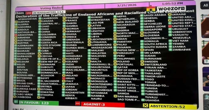 In explaining its position, the United States argued that the resolution risked creating a hierarchy among crimes against humanity, suggesting that elevating one historical injustice above others could undermine established international legal frameworks. US representative Dan Negrea also criticised what he described as the “cynical usage of historical wrongs as a leverage point… to reallocate modern resources to people and nations who are distantly related to the historical victims.”Israel aligned with similar concerns, while Argentina also voted against the measure, although detailed explanations for their positions were less prominently outlined during proceedings.